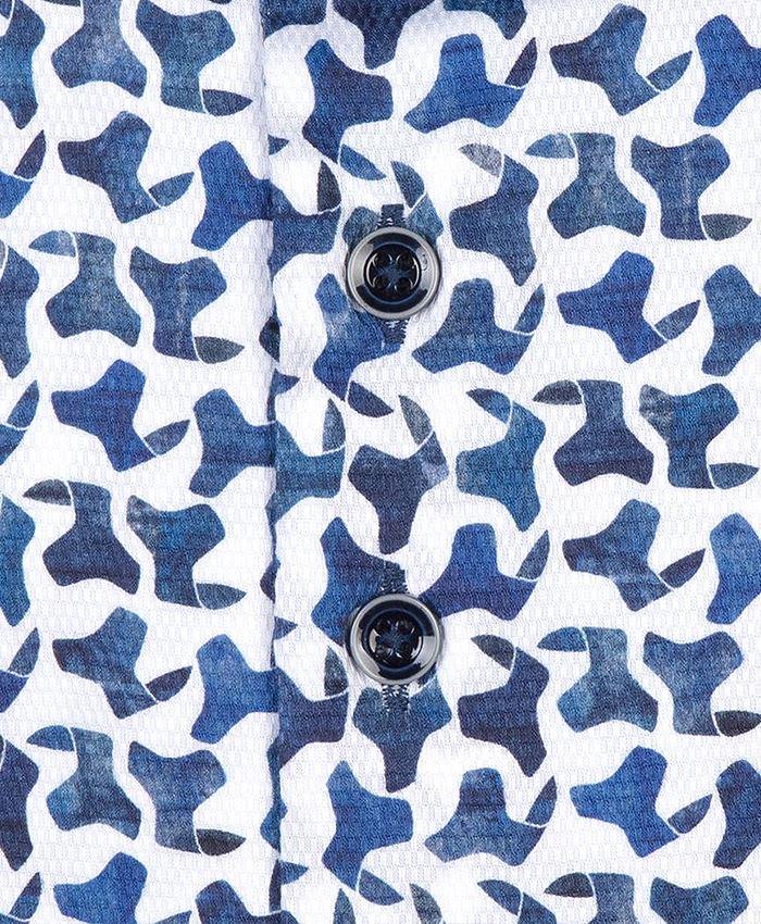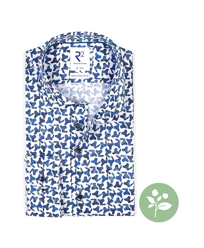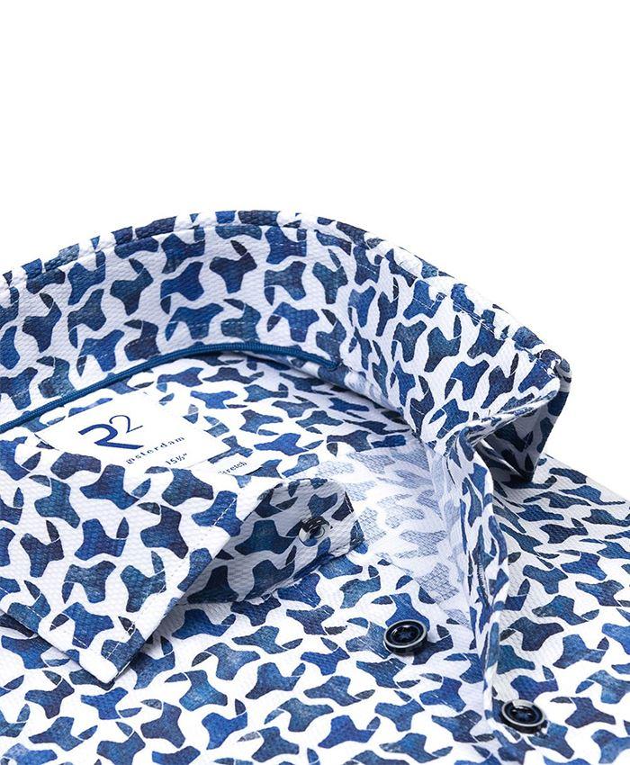 R2 Hemd aus der ,,Take a Seat‘‘ Kollektion hat eine blaue Farbe und ein trendiges all-over Muster mit Stühlen. Der Widespread-Kragen, die einzelnen Manschetten und kontrastierende Knöpfe ergänzen den modischen Look des Hemdes.